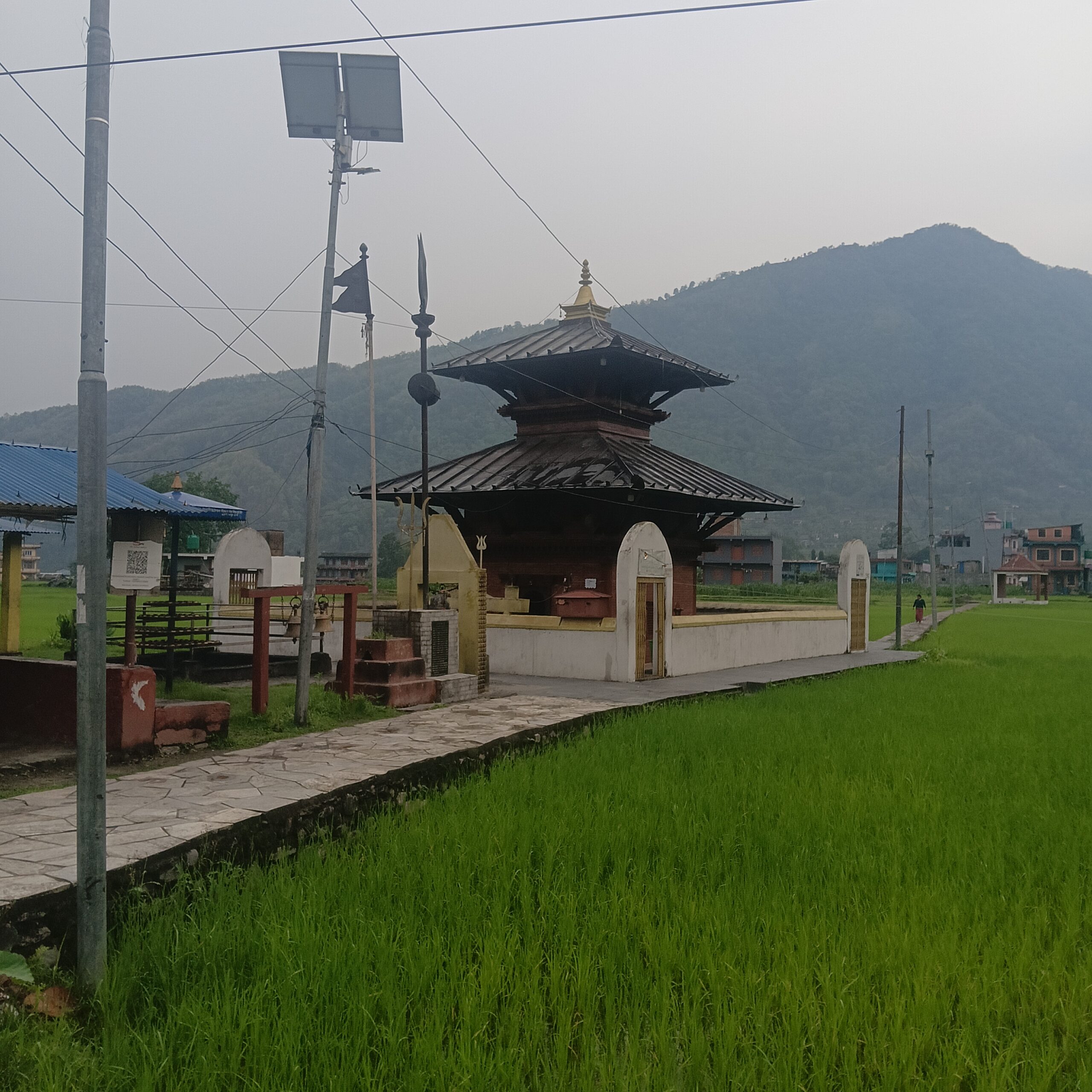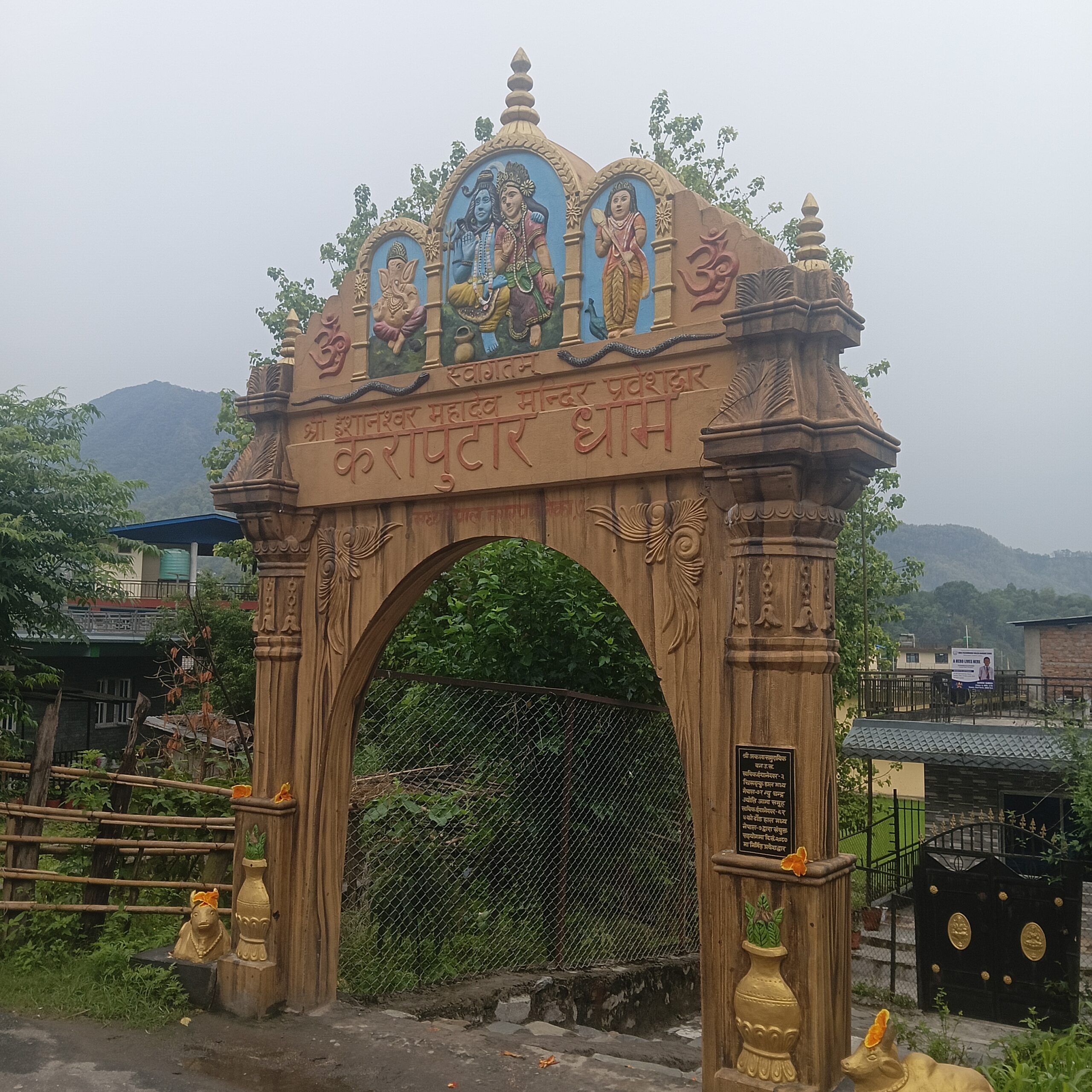 मध्यनेपाल नगरपालिका वडा नं ७ मा रहेको करापुटार धाम । तस्वीरमा धाम प्रवेशद्वार र इशानेश्वर महादेव मन्दिर । साउन महिना र महाशिवरात्रीका बेलामा विशेष मेला लाग्ने यो मन्दिरमा शिवरात्रीको अवसरमा ठाडा बत्ती बाल्ने हो भने सन्तान प्राप्ती हुने विश्वास गरिन्छ । तस्वीरः रमेश विकल