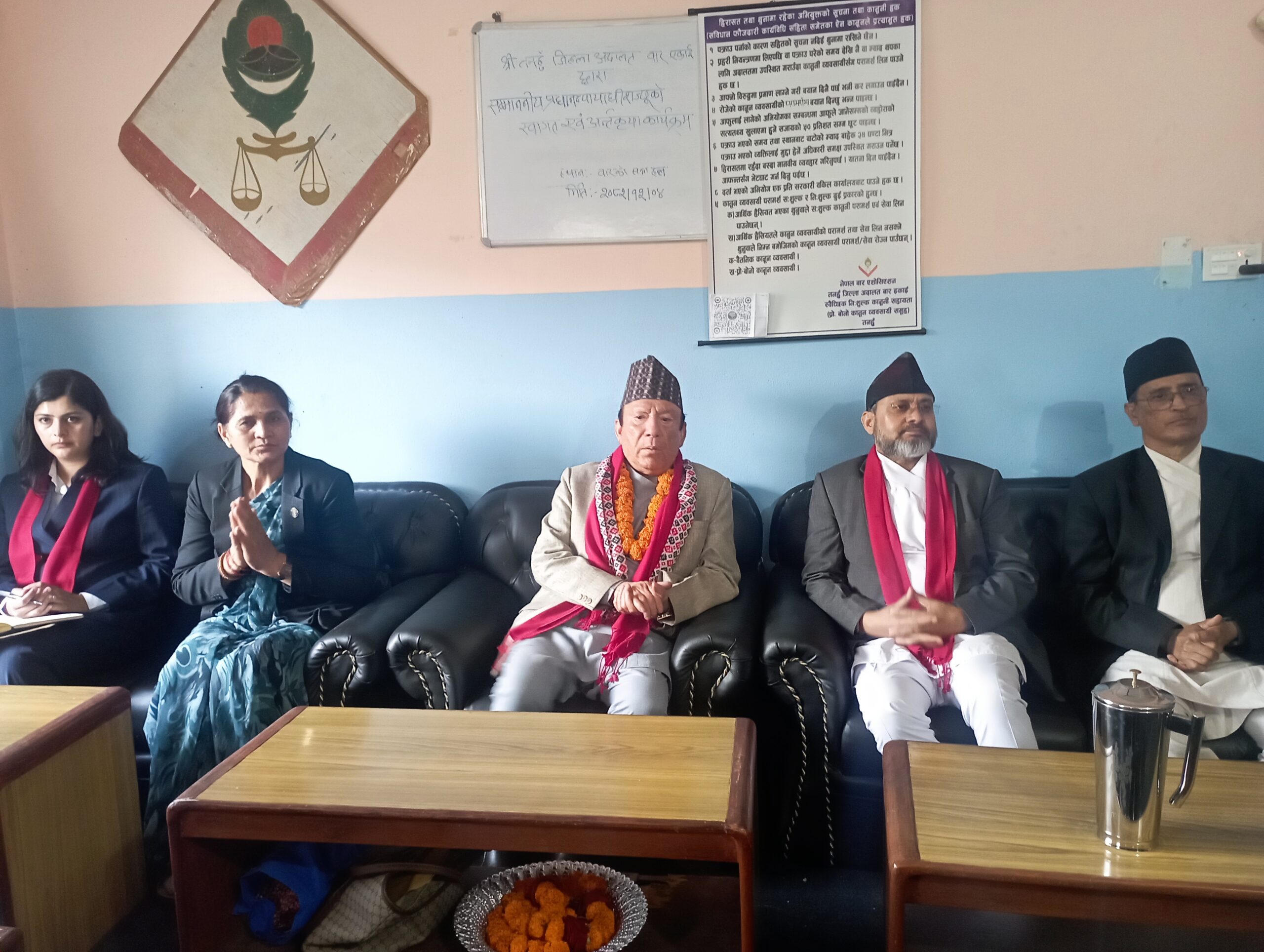 नेपाल बार एशोसिएसन तनहुँ बार इकाइले आज चैत्र ४ गते आफ्नो कार्यालयमा प्रधानन्यायाधीश प्रकाशमान सिंह राउतलाइ गरेको बारको सचिब माधब घिमिरेले बताए । तस्विर तनहु आवाज