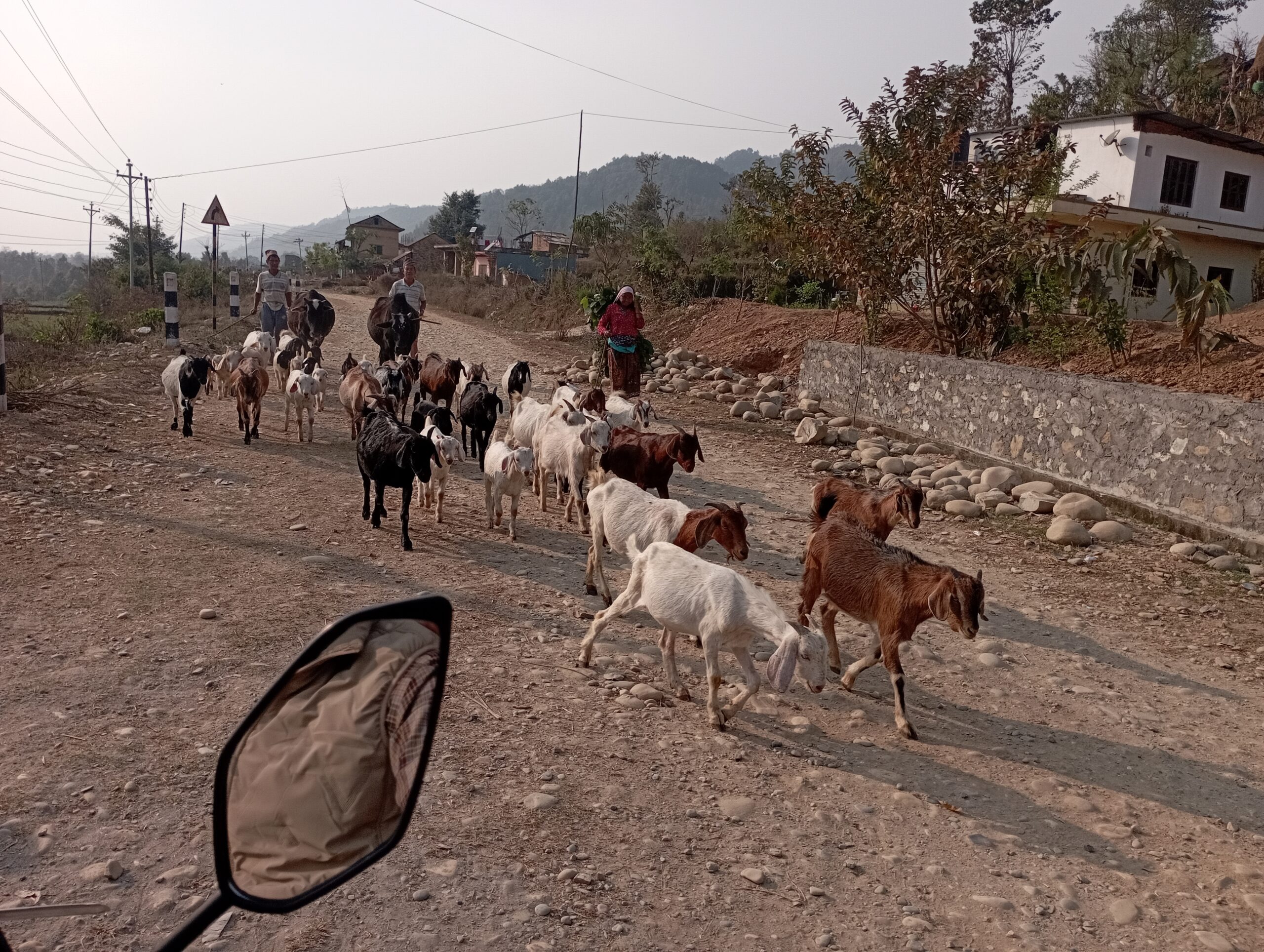 तनहुँ जिल्लाको घिरिङ्ग गाउँपालिका वडा नं. १ पुट्टारका कृषकहरु दिनभर आफ्ना बाख्रा जंगलमा चराएर साँझ घरमा फर्काउँदै ।