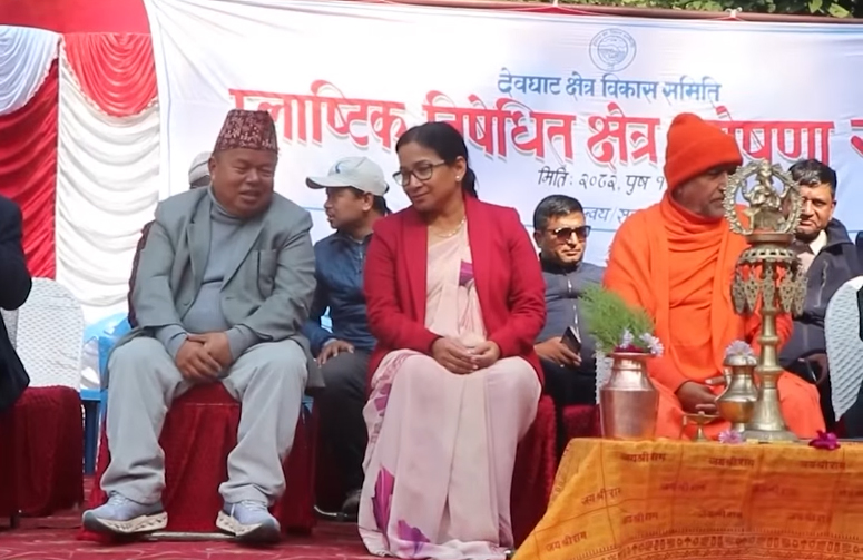 शुक्रबार भरतपुर महानगरपालिका–१ देवघाटमा आयोजित कार्यक्रममा भरतपुर महानगरपालिकाकी प्रमुख रेणु दाहालले देवघाटधामलाई प्लास्टिकमुक्त क्षेत्रको घोषणा गरेकी थिइन् ।